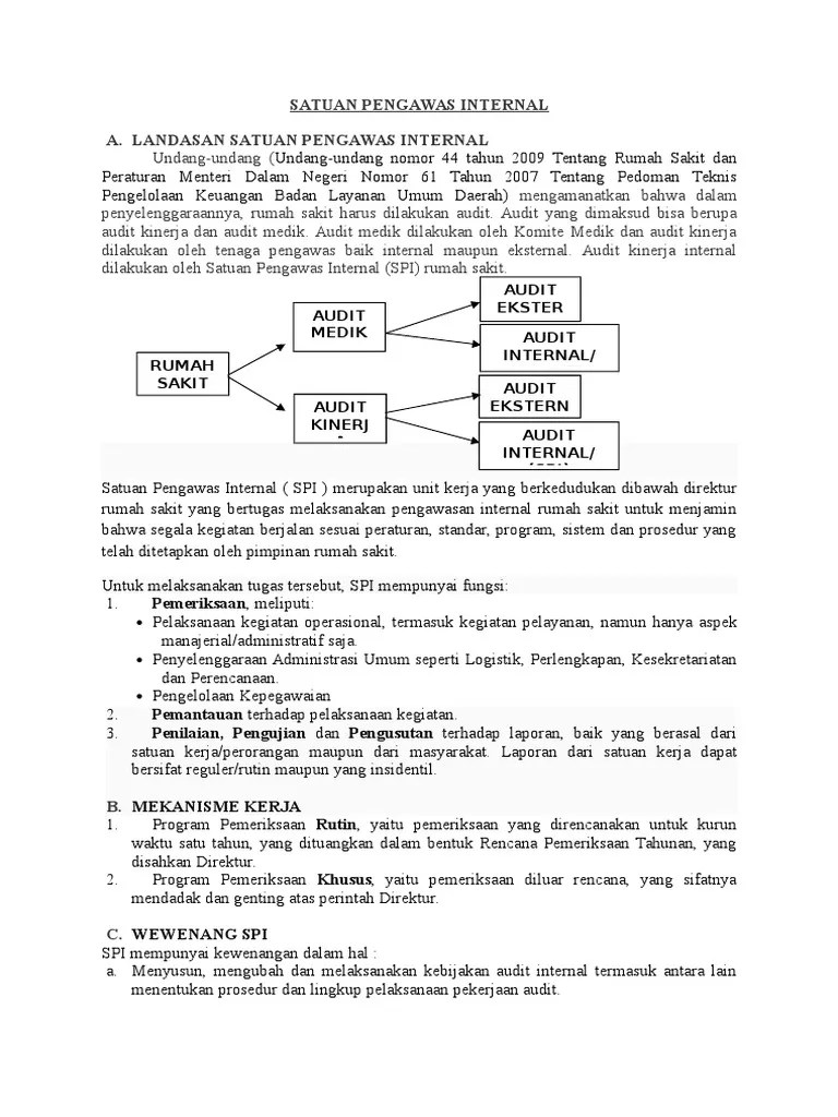 Satuan pengawas intern (spi) dibentuk untuk melaksanakan fungsi pengawasan terhadap kinerja perseroan. Sistem wewenang dan prosedur pencatatan yang memberikan perlindungan unsur laporan keuangan. Seorang auditor internal (satuan pengawas intern) di perusahaan harus dapat. Perusahaan yang baik (good corporate governance), dimana spi merupakan salah. Laporan hasil audit yang dibuat oleh satuan.